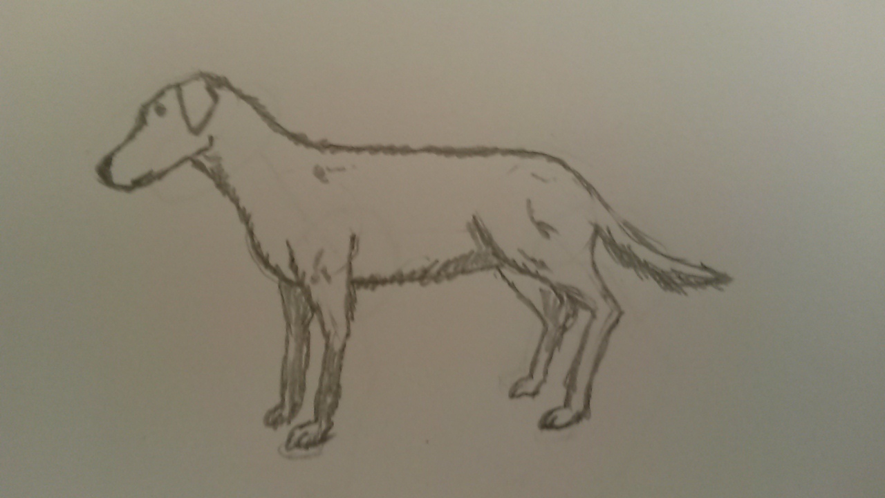 Aquí ya tenemos el perro casi al completo, solo falta borrar las líneas que hicimos al principio y repasar el exterior haciendo trazos cortos imitando el pelaje.